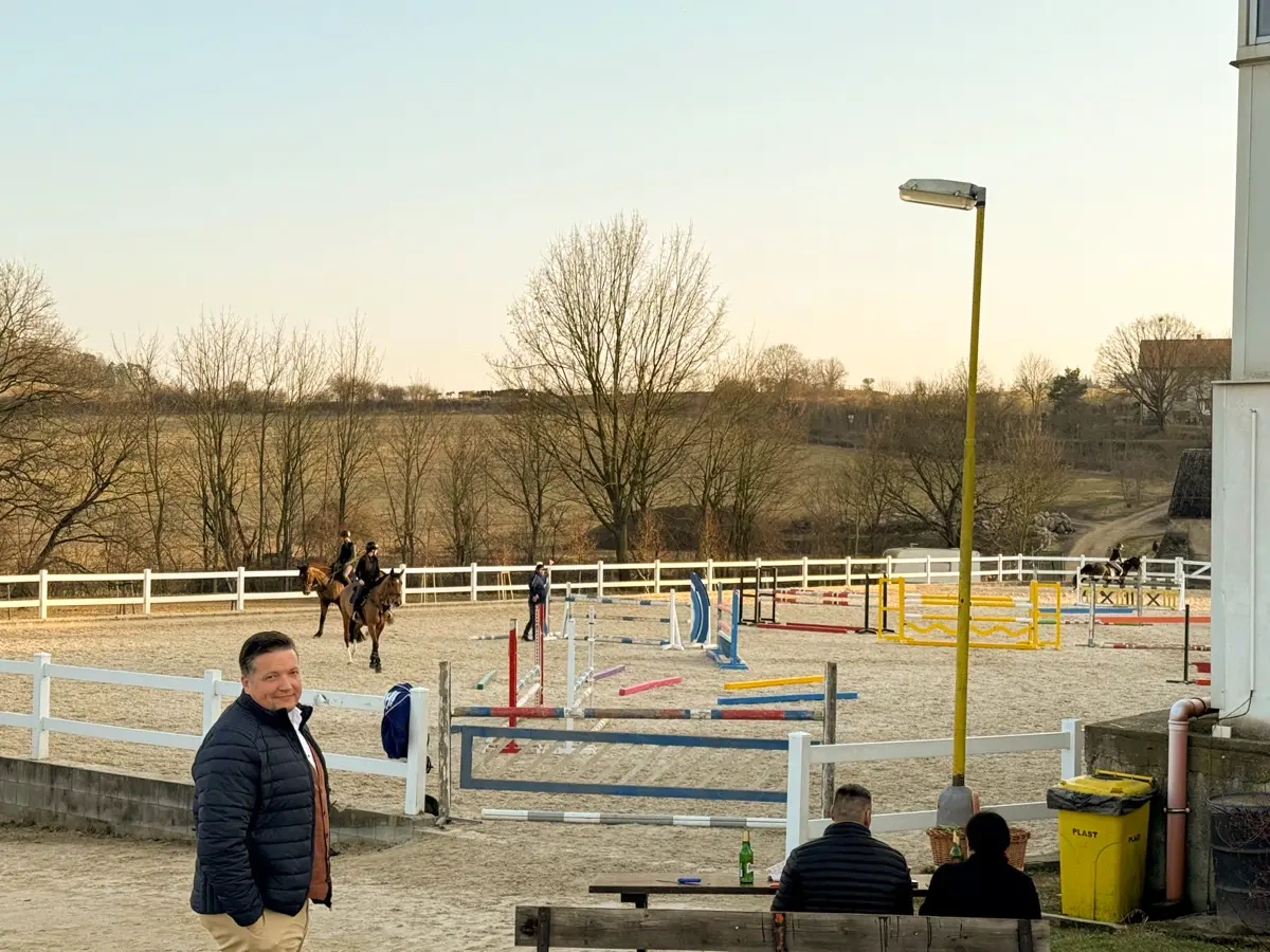 S nachystanou prezentací a povídáním cca na 50 min. jsme vyrazili do centra dění. Do Zduchovic. Uprostřed nádherné krajiny, u Kamýku nad Vltavou jsme vjeli do velkého koňského světa. Několik stájí, hala, venkovní jízdárny, moderní kolbiště a zázemí. V tomto areálu se každý rok odehrává několik parkurových soutěží, včetně MČR všech kategorií.